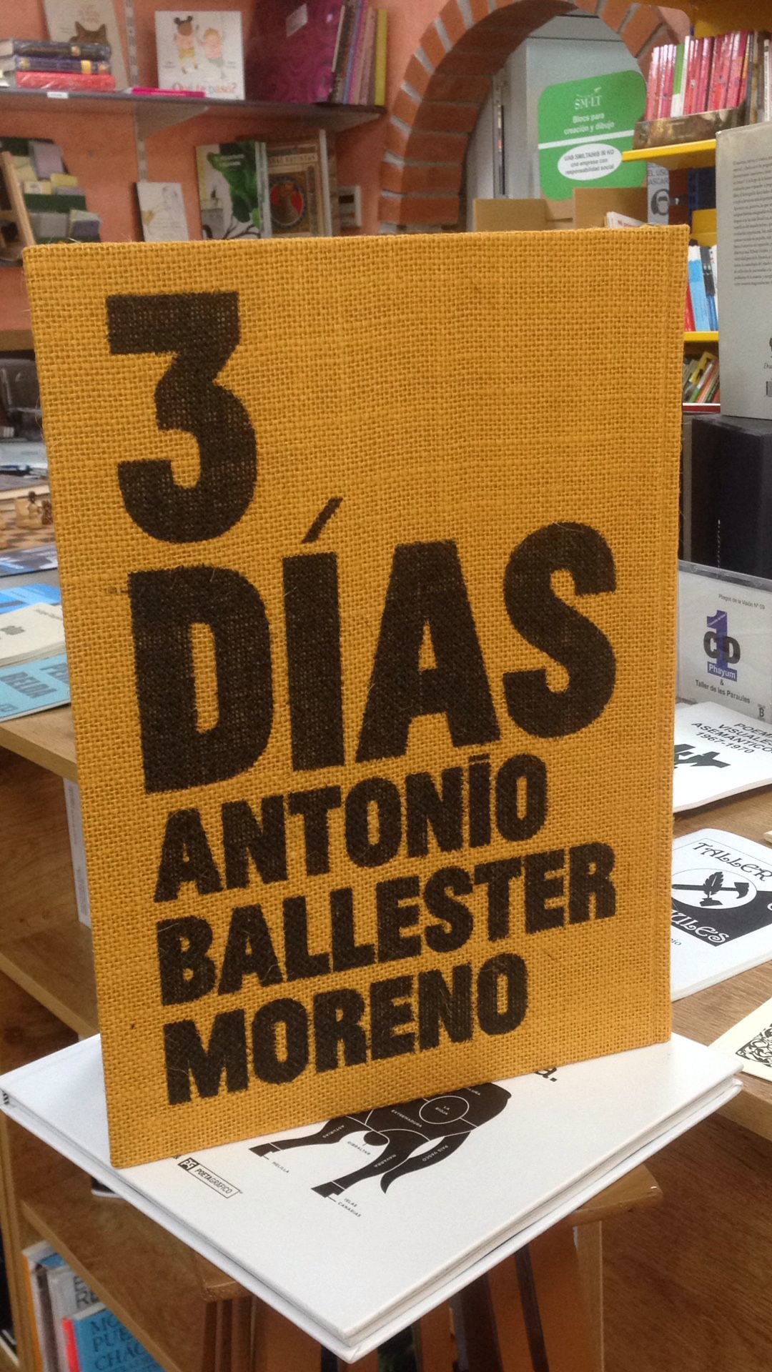 Caniche Editorial publica en sus libros obra de arte contemporáneo en su compromiso por «seguir el camino de los artistas» y de «dar visibilidad a propuestas que de otra forma no serían accesibles al público». En La tienda de Lope contamos con títulos de Moisés Puente, Txomin Badiola y Elena del Rivero entre otros, así como de algunos catálogos y proyectos pictóricos, fotográficos o escénicos interesantes y que es recomendable conocer, siempre en ediciones que dialogan con la obra publicada y da a los libros condición de coleccionable. Por cierto que desde hace algunas semanas tenemos en la librería «Tres días», de Antonio Ballester Moreno, una edición que, esta sí, tiene mucho de juego a partir de las reconocibles geometrías y colores del artista, y que se propone para compartir entre infancias y adulteces, sean estas las propias de una única persona o las correspondientes a la edad de quienes decidan sentarse juntos a una mesa para leer, mirar, pasar hojas juntos… Cabría relacionarla con la poesía visual que desde Brossa, o por aquí Francisco Pino, entre otros, o más recientemente Felipe Zapico o Paco Pérez Belda, propone a lectores nuevas maneras de relacionarse con palabras o de construir poemas a partir de imágenes. Un trabajo este de Caniche con Ballester muy sugerente, que apetece mirar y tocar a partes iguales, recomendable tanto para amantes de las artes plásticas y de la poesía visual como del coleccionismo editorial.