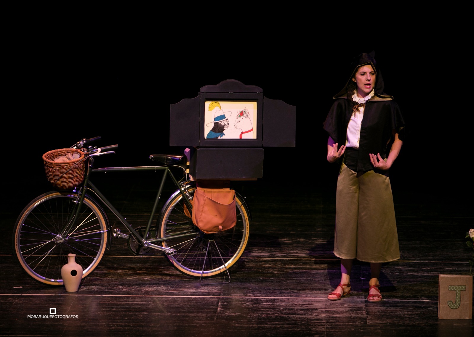 En la dirección de Mireia Fernández la sencillez, la siempre tan difícil sencillez, juega a favor de la dramaturgia de Georgina de Yebra pues los elementos que conforman la escena potencian la narración oral. Y esto es lo fundamental. El encuentro con el público infantil se produce a través de la palabra dicha y la bicicleta y su kamishibai, el botijo y los libros -todos ellos elementos en sí mismos esenciales- son apoyo a las historias de la actriz cuentacuentos y de entre las que ocupan lugar distinguido «La dama boba» y «La gatomaquia» (hay más gatos en Lope de Vega que en Haruki Murakami, y además Lope les pone nombre).