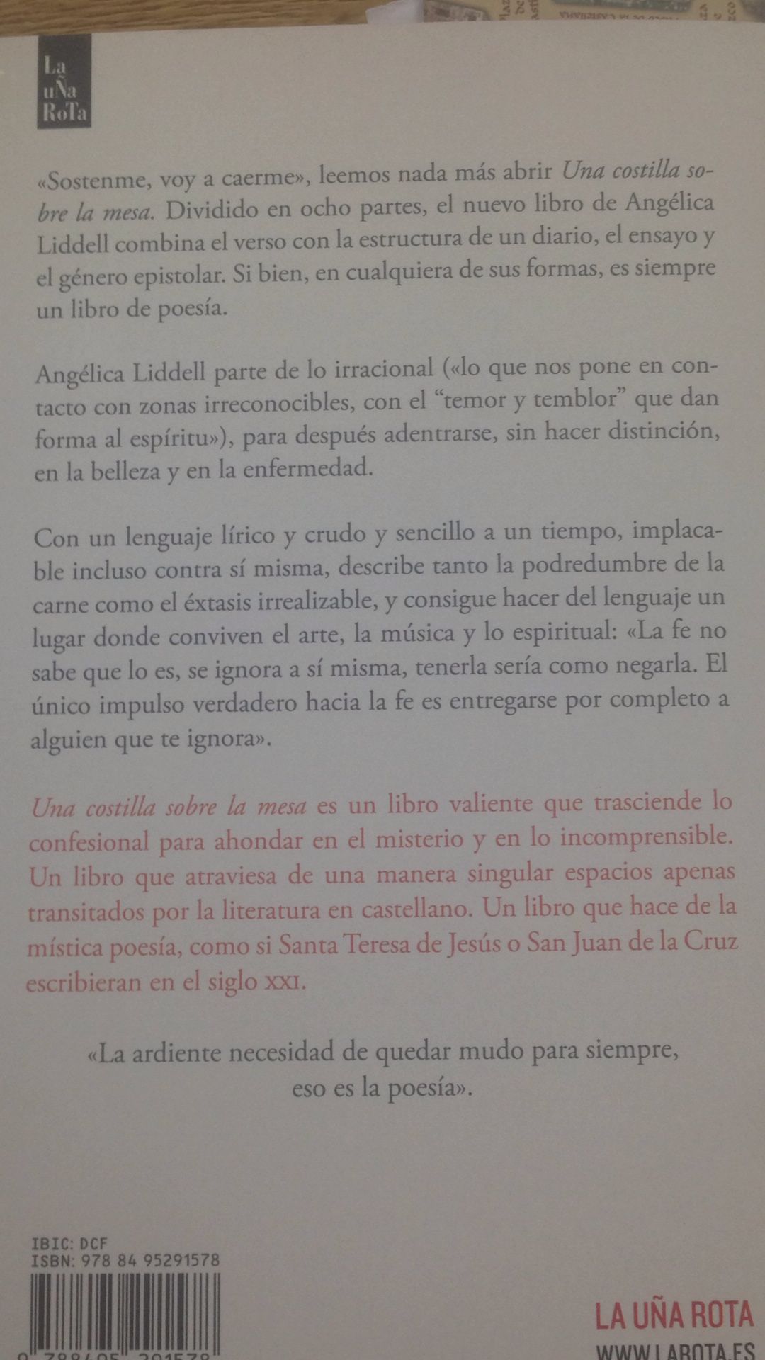 A veces veo en Liddell una conexión con conceptos o ideas nietzscheanas como la voluntad de poder cuya imposibilidad de aplicar derivan en un malestar existencial que se desarrolla en forma de frustración, llanto y rabia. «No hay más diablo que la persona común». El misticismo de Liddell no es tal por muy religiosos que nos parezcan sus textos. La auténtica libertad es inaplicable porque sería transgresora, y ni siquiera una personalidad como Angélica Liddell puede llegar a tanto. La violencia es inútil hacia el impenetrable muro de afuera y sólo cabe ejercerse hacia uno mismo. Tiene de místico lo que hay de consagración a Dios, aunque no puede dejar de leerse en ese dios al propio ángel (o diablo, o la tensión entre ambos) que es uno mismo. Pero sí, quizás sea una suerte de misticismo, no lo sé.