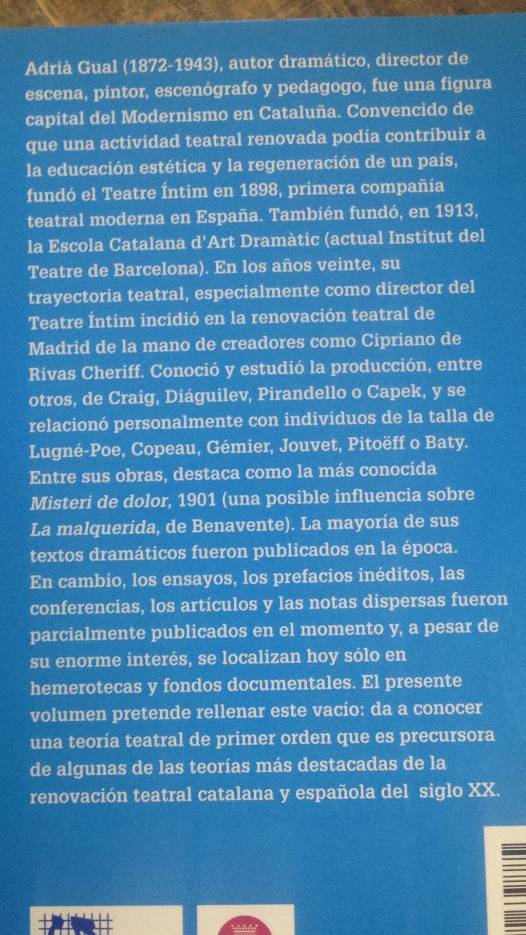 Teoría escénica Javier Pérez Lázaro Teatro 14 octubre, 2022 1 minuto Adriá Gual, entre y1894 y1922. Edición de 2016 a cargo de Carles Batlle y Enric Gallén. 406 páginas. Pvp: 23 € Comparte: Haz clic para compartir en X (Se abre en una ventana nueva) X Haz clic para compartir en Facebook (Se abre en una ventana nueva) Facebook Me gusta Cargando... Relacionado Publicado por Javier Pérez Lázaro Ver todas las entradas de Javier Pérez Lázaro Publicado 14 octubre, 2022