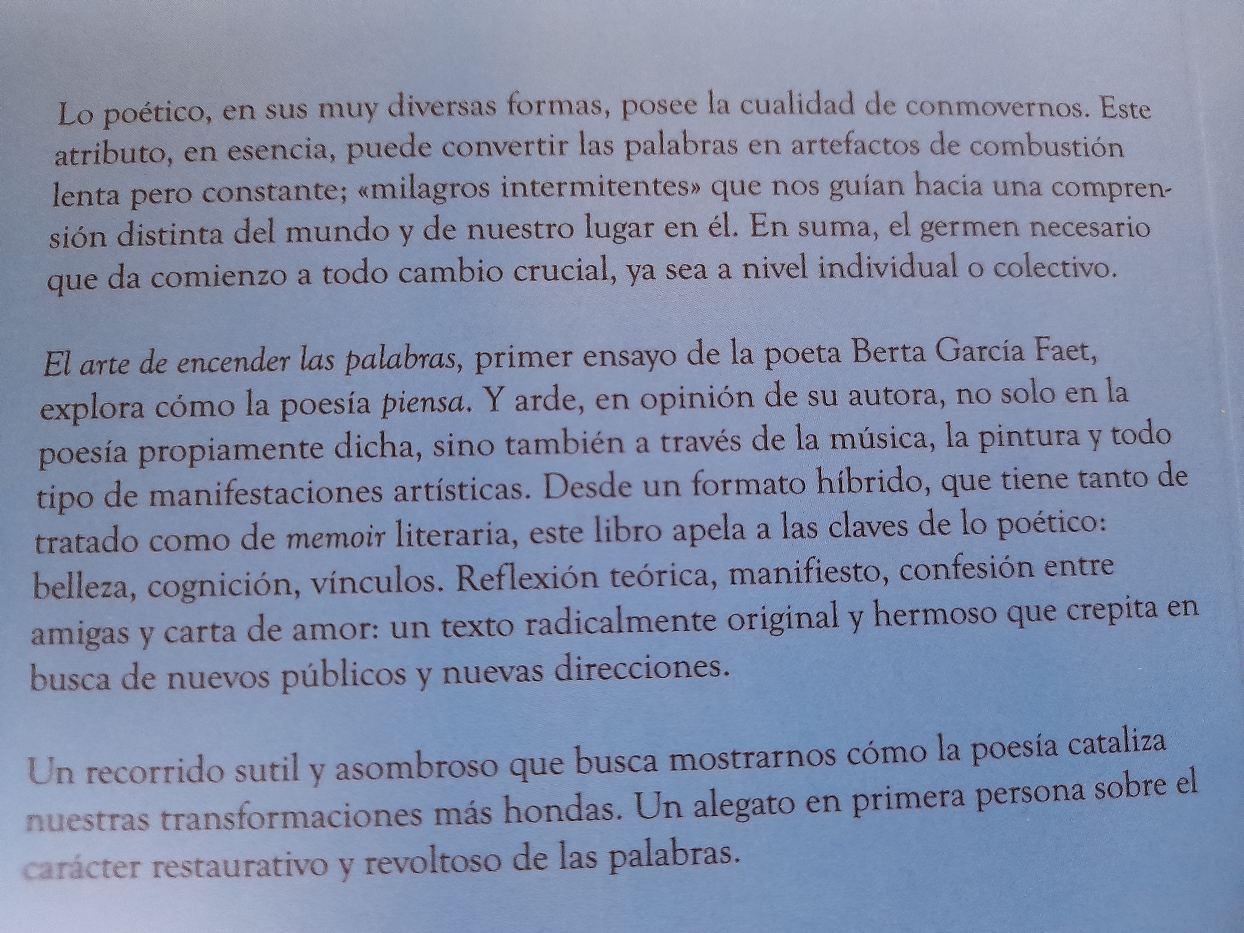 El arte de encender las palabras Javier Pérez Lázaro Poesía 13 noviembre, 2023 1 minuto Berta García Faet, 2023. Barlin libros, 2023. 215 páginas. Pvp: 17 € Comparte: Compartir en X (Se abre en una ventana nueva) X Comparte en Facebook (Se abre en una ventana nueva) Facebook Me gusta Cargando... Relacionado Publicado por Javier Pérez Lázaro Ver todas las entradas de Javier Pérez Lázaro Publicado 13 noviembre, 2023