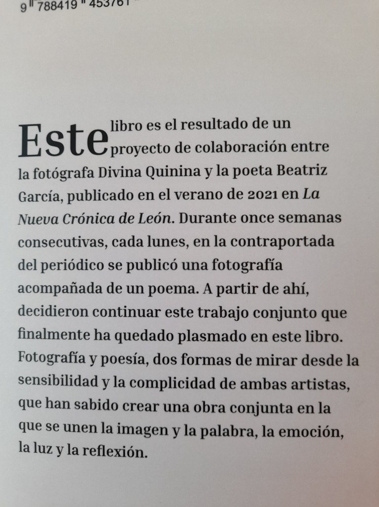 Instantes Javier Pérez Lázaro Fotografía, Poesía 5 febrero, 2024 1 minuto Beatriz García y Divina Quinina, 2023. Éolas ediciones, 2023. 62 páginas. Pvp: 10 €. Comparte: Haz clic para compartir en X (Se abre en una ventana nueva) X Haz clic para compartir en Facebook (Se abre en una ventana nueva) Facebook Me gusta Cargando... Relacionado Publicado por Javier Pérez Lázaro Ver todas las entradas de Javier Pérez Lázaro Publicado 5 febrero, 2024